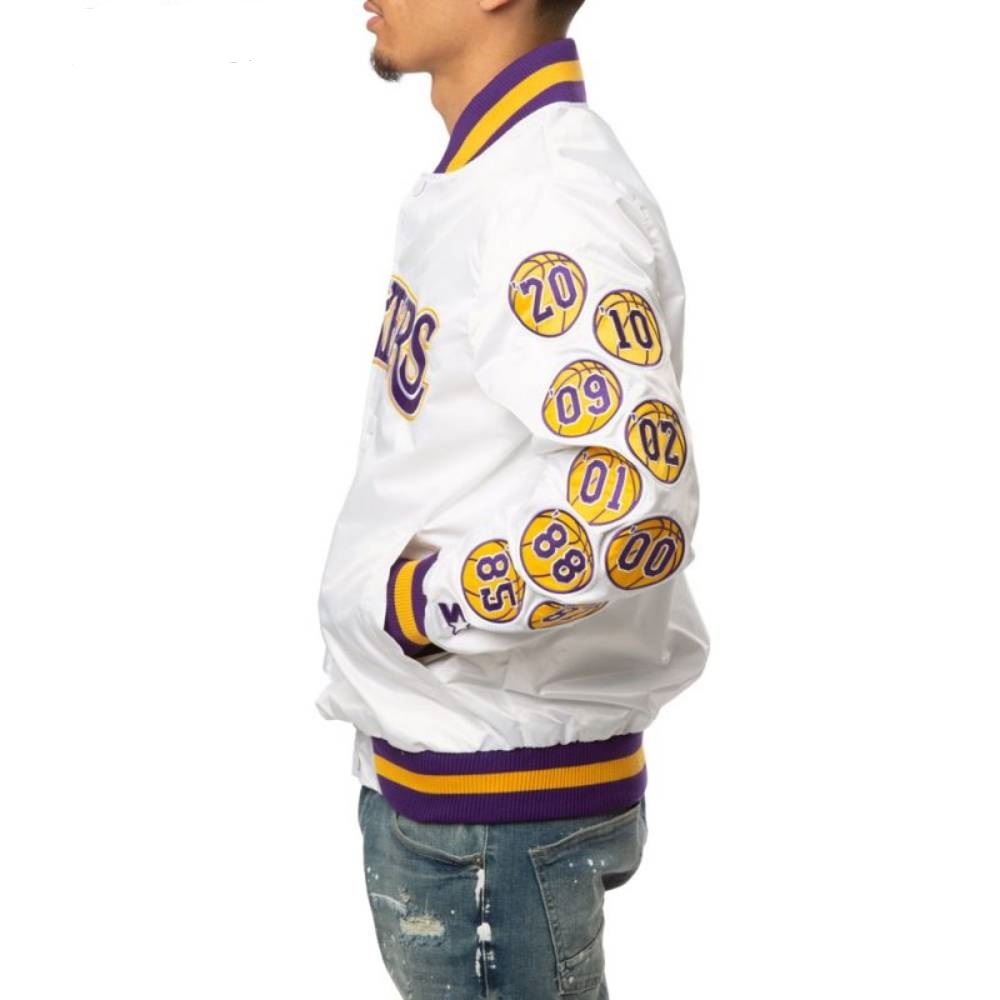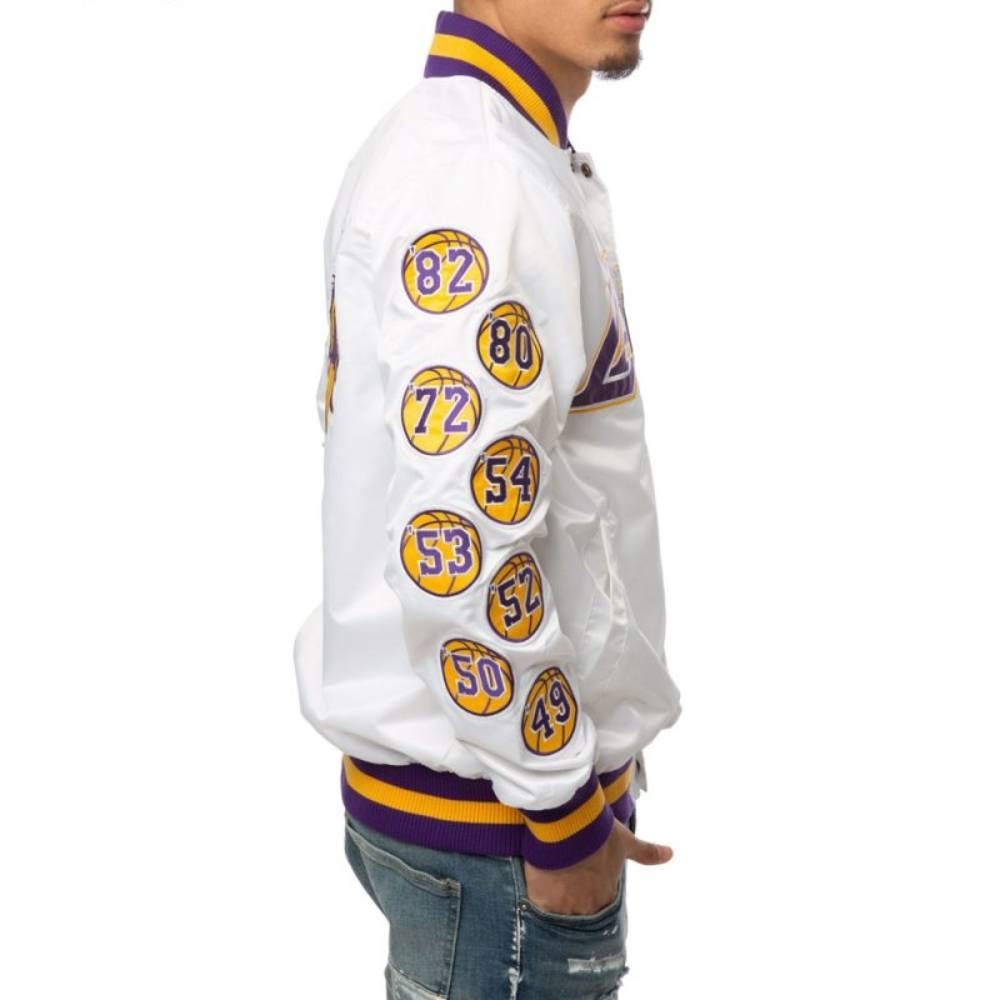 17 Patches Los Angeles Lakers Champs Bomber Satin Varsity Jacket White color