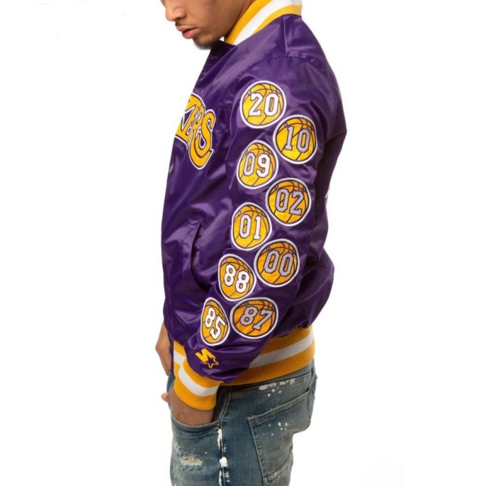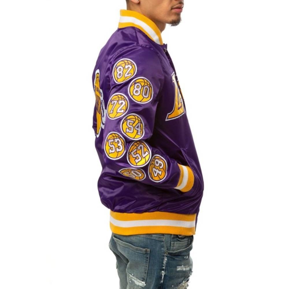 17 Patches Los Angeles Lakers Champs Bomber Satin Varsity Jacket Purple color