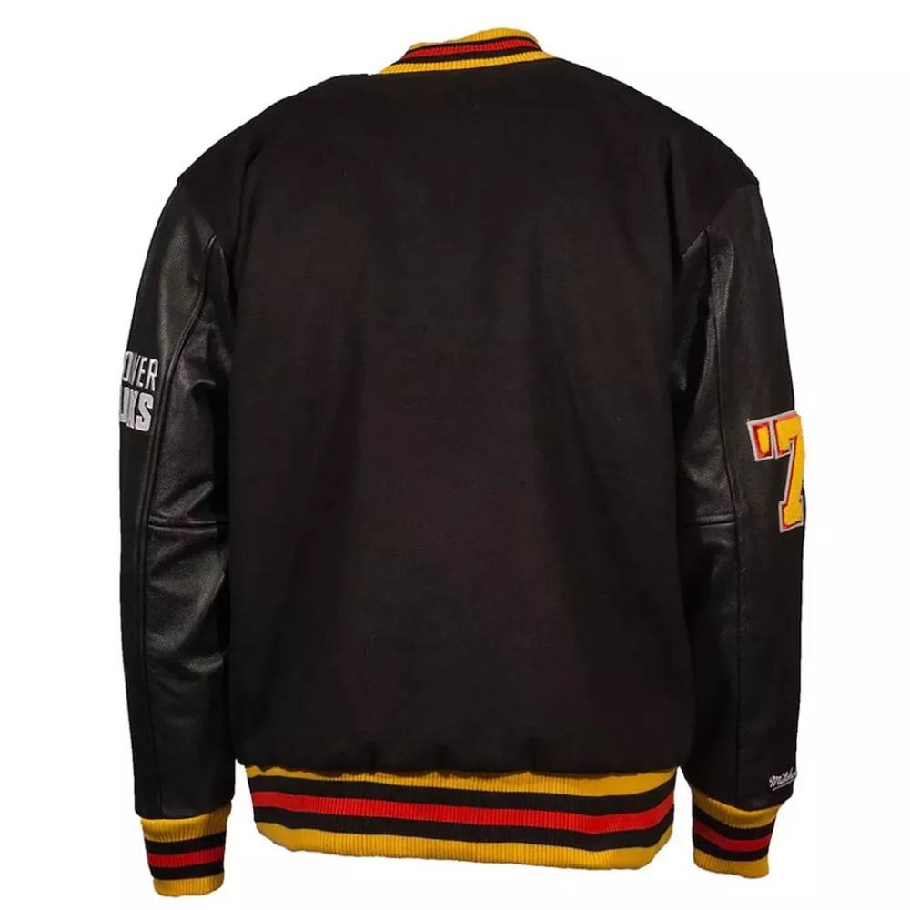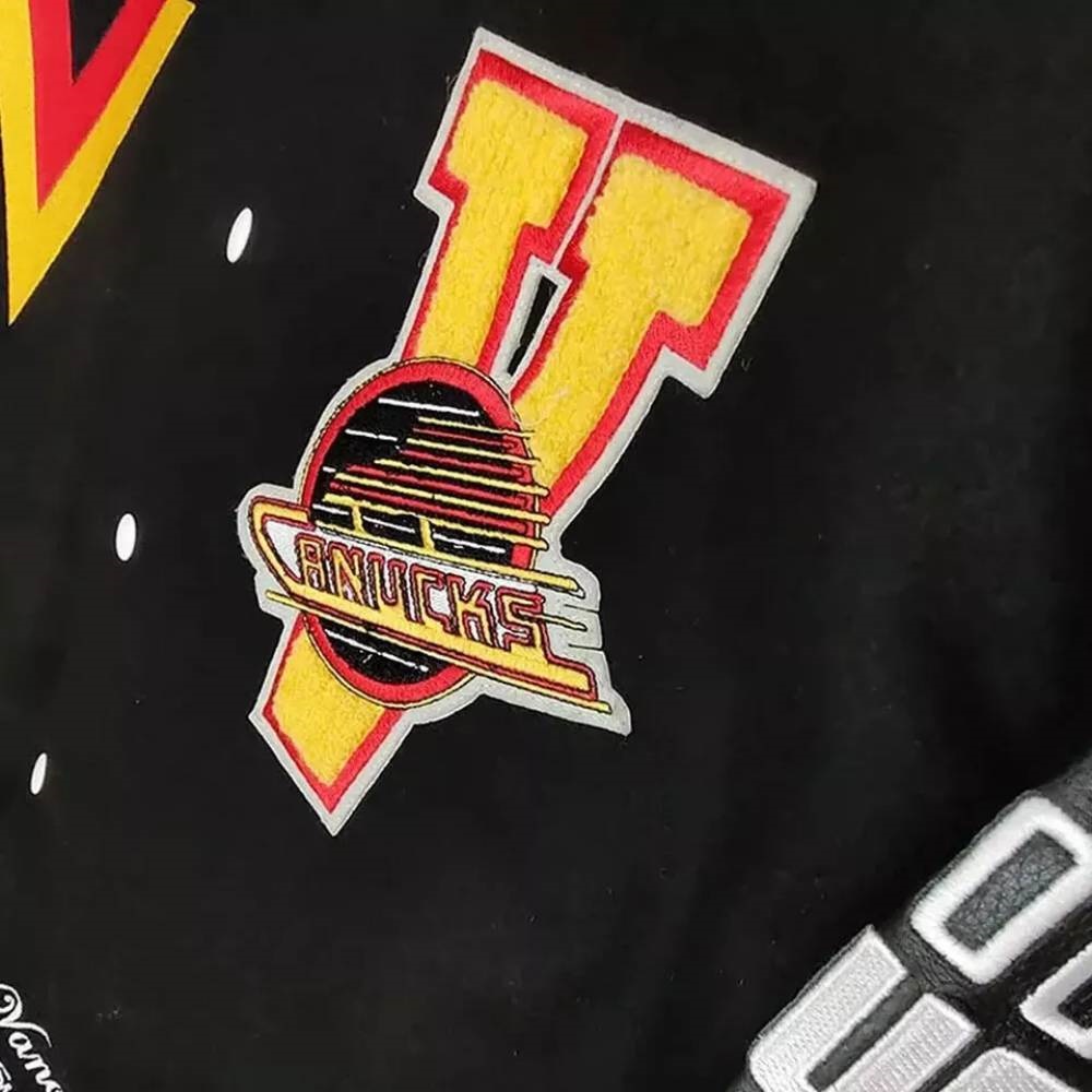Vancouver Canucks Varsity Full-Snap Black Wool/Leather Jacket Free Shipping