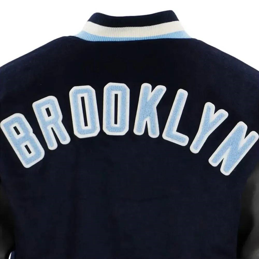 Brooklyn Royal Navy/Gray Giants Full-Snap Varsity Wool/Leather Jacket