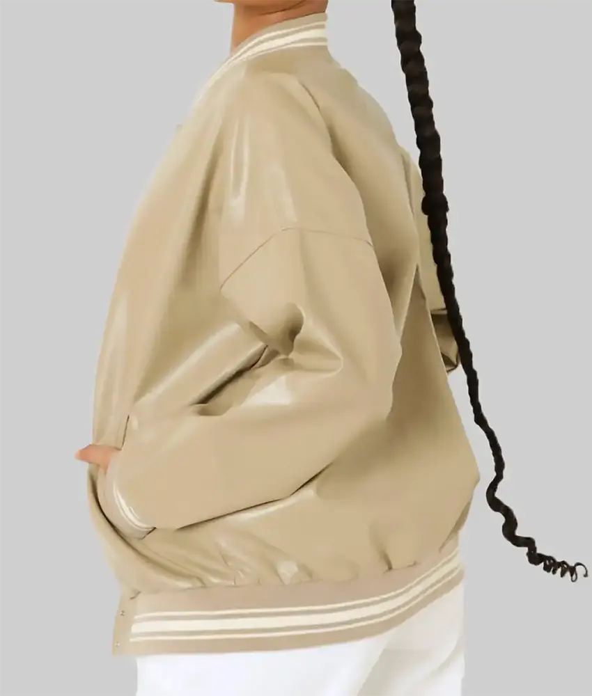 Women’s Beige Leather Varsity Jacket